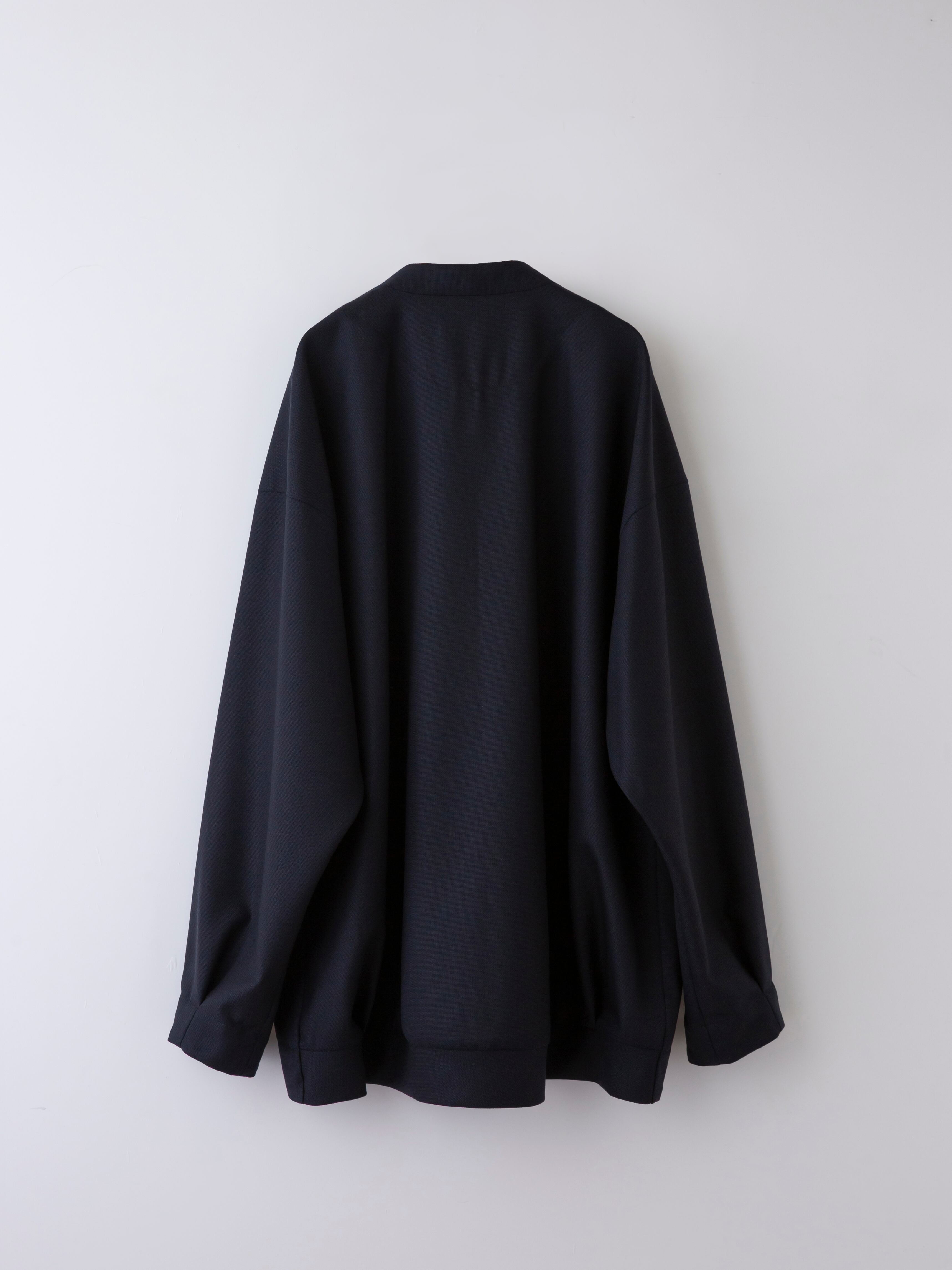 衿はすっきりとしたノーカラー、肩は縫い目のないドロップショルダー仕様。