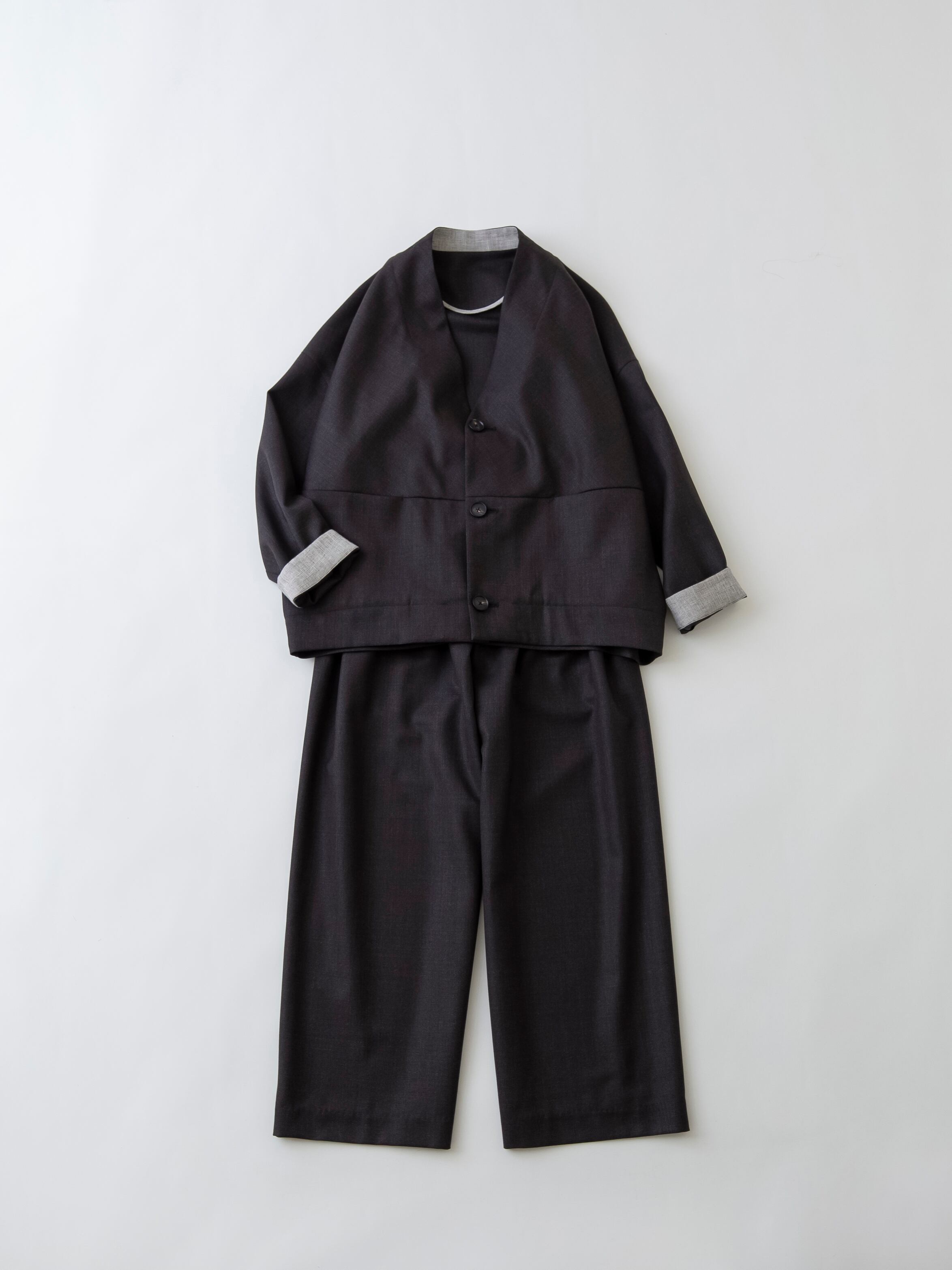 カーディガンと組み合わせて、ひと味違うセットアップスーツとしてもご着用いただけます。