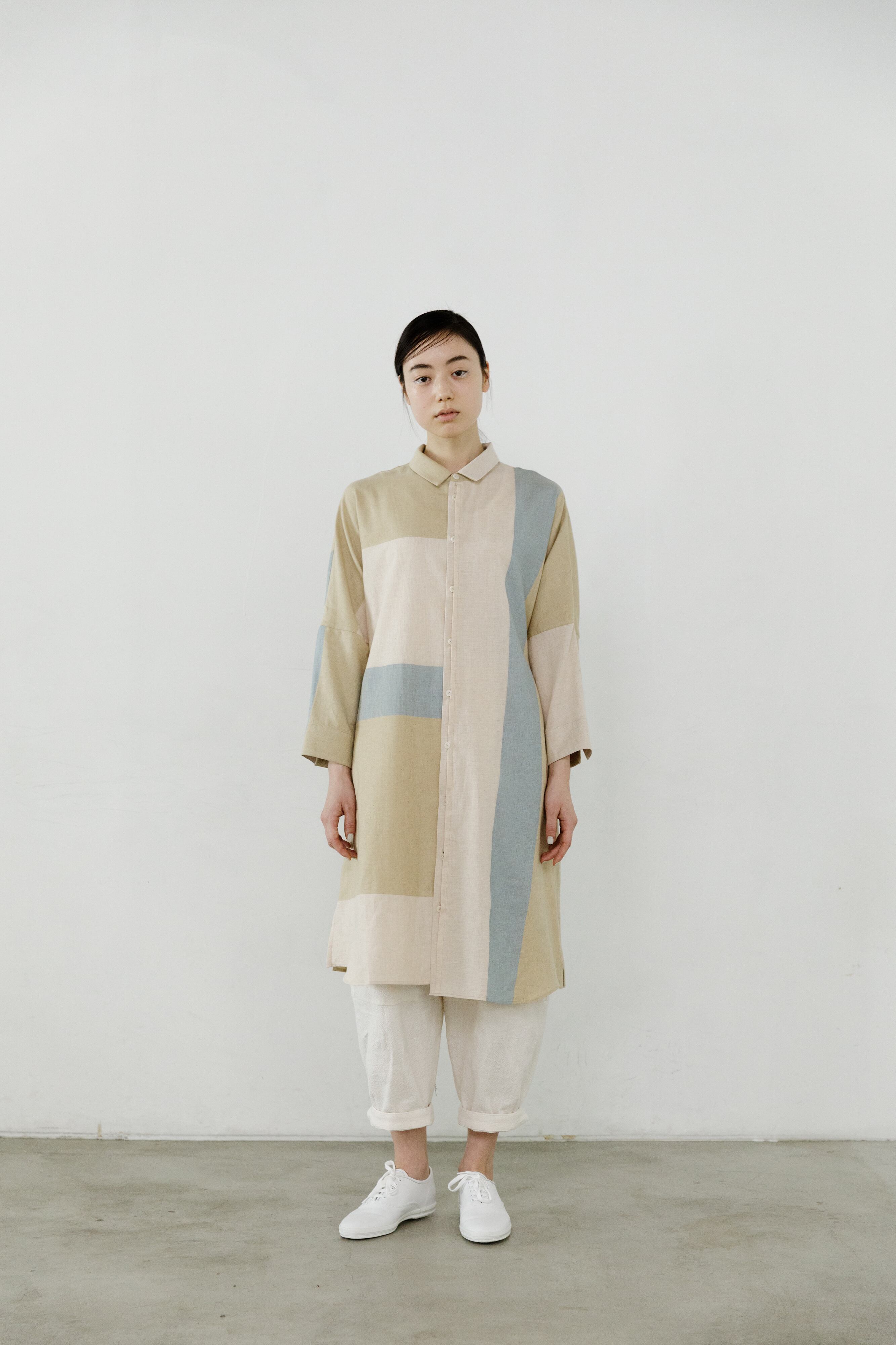オリジナルテキスタイル(播州織物)を使用した定番ロングシャツ。