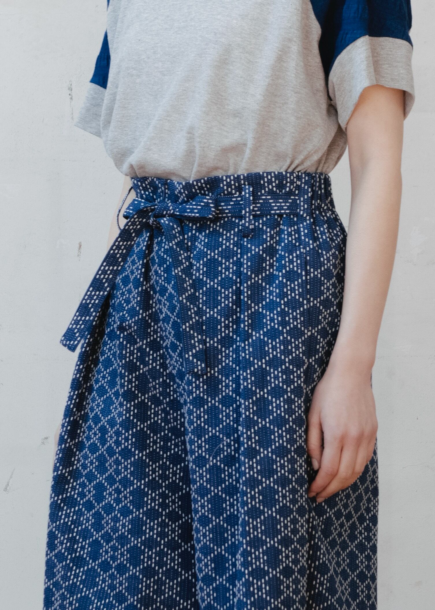 脇ベルトはコーディネートによって、結んだり結ばず垂らしたりアレンジできます。
