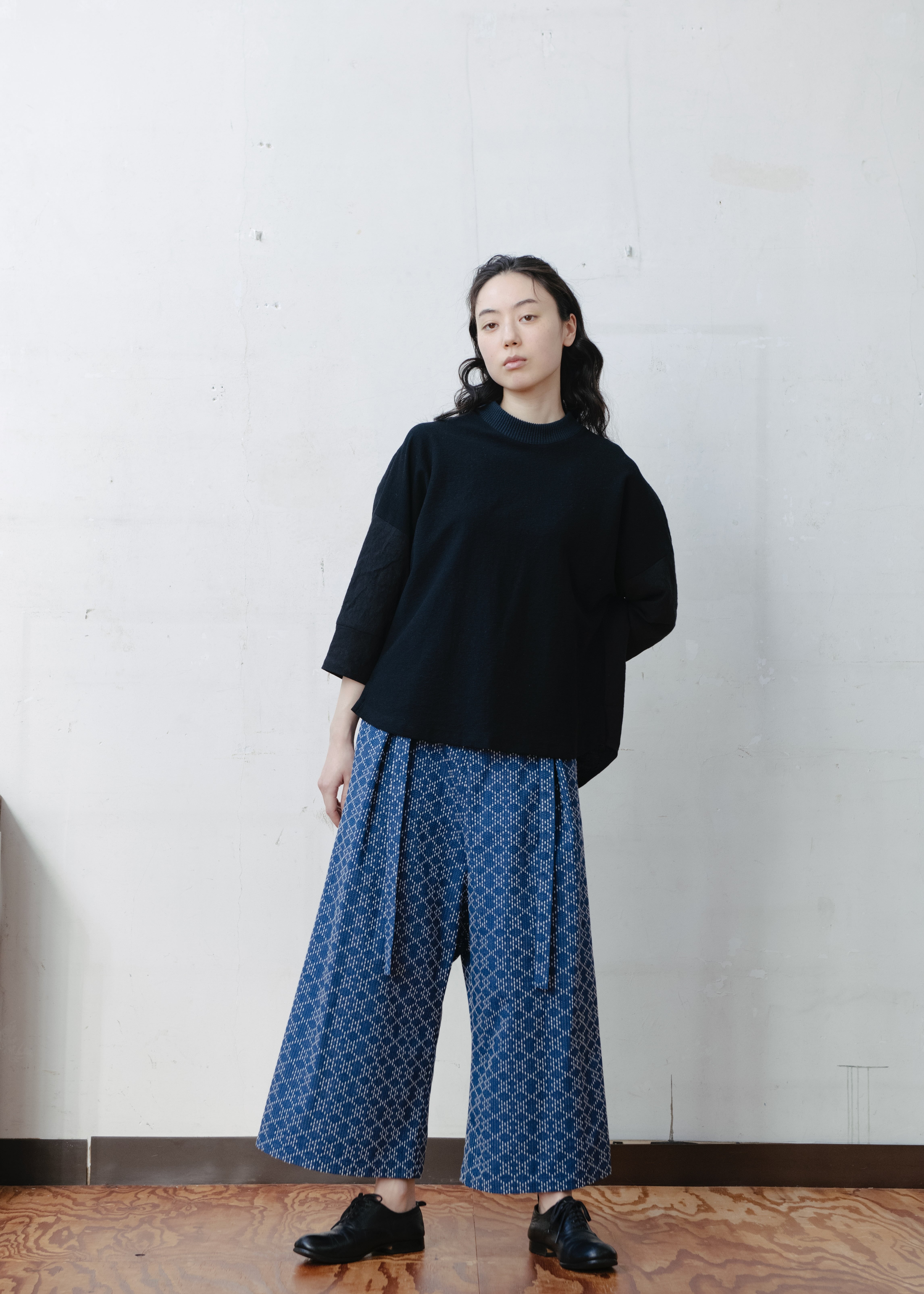 股上深めのワイドパンツです。