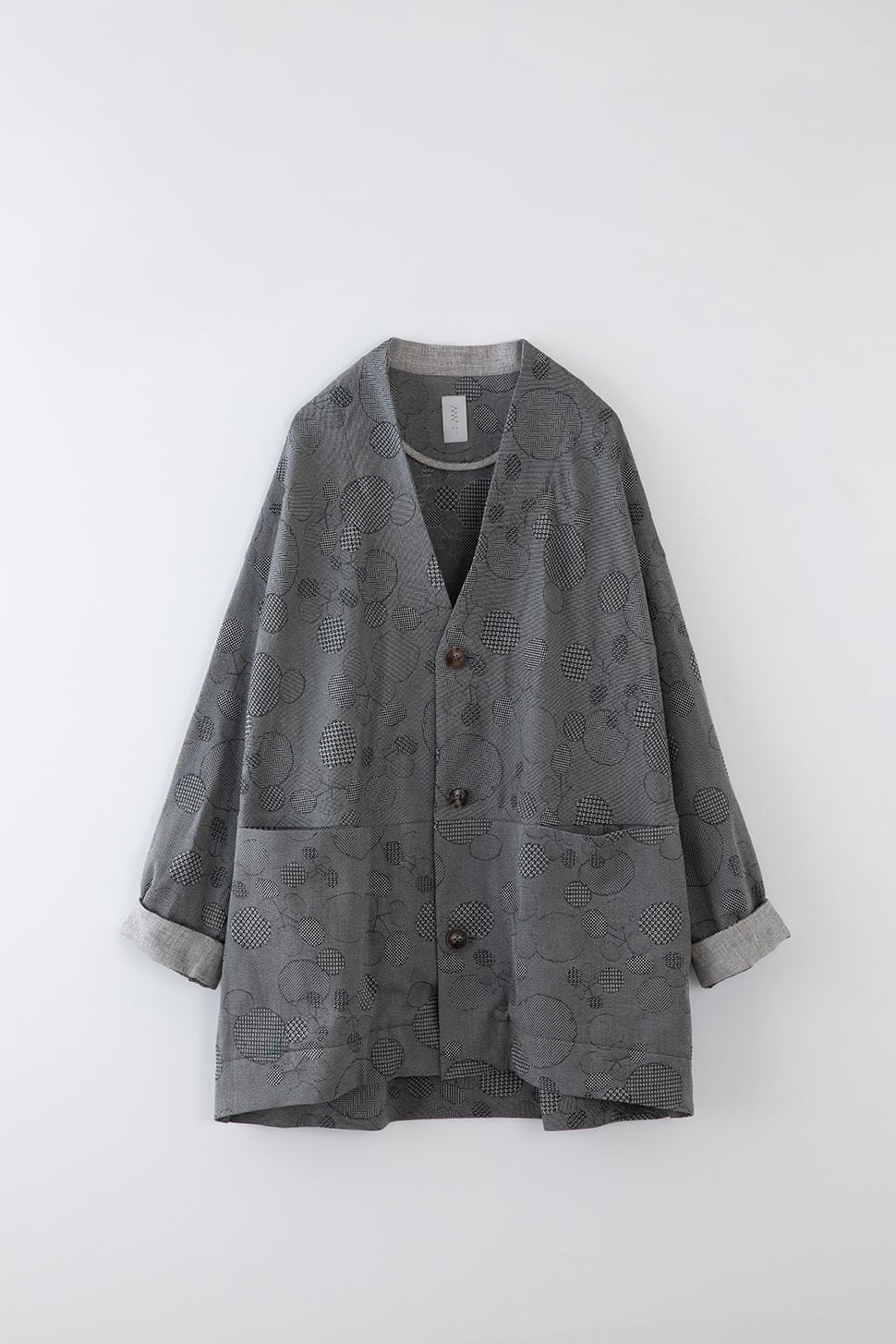 衿はノーカラー、肩はドロップショルダーで縫い目がないパターンになっており、