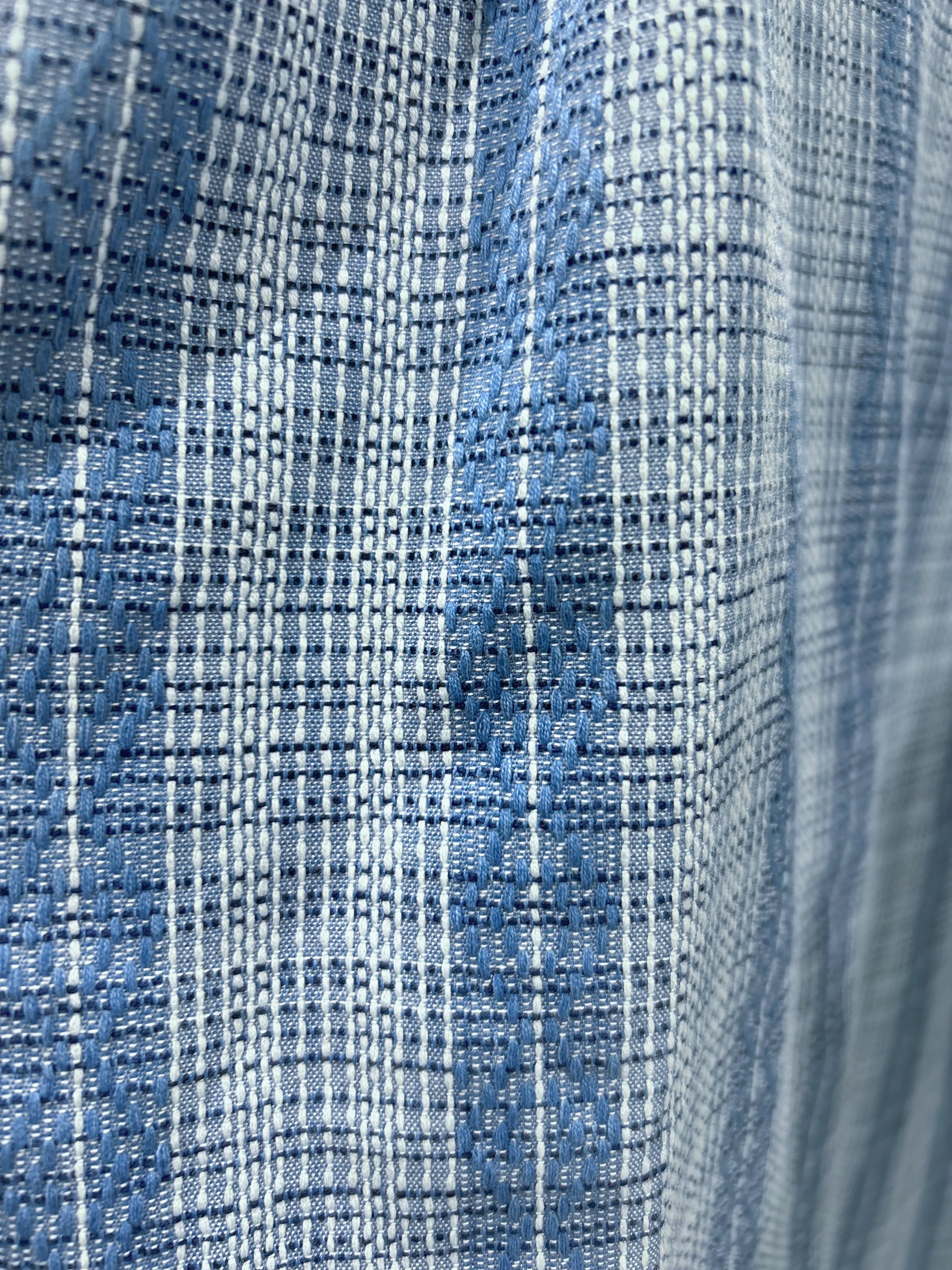 浅黄に染色した藍染糸と白刺子糸を使用し、