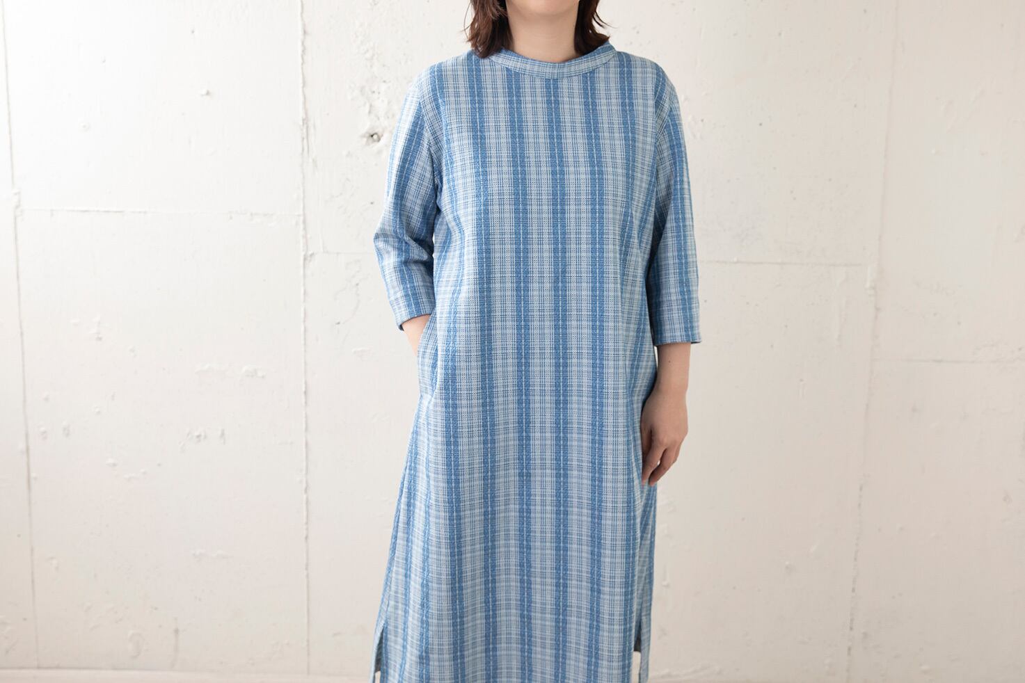 衿はスタンドカラー、袖は8分丈で袖口にスリットがあり見返し仕様となっています。